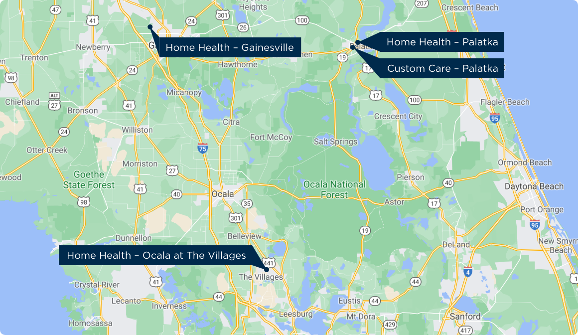 Gainesville, home of the University of Florida, and Ocala are rural towns with plenty of personality. Outdoors activities and a laid-back lifestyle are the cornerstones of these communities. For Brooks, home health services allow community focused support that bring our employees and their patients closer.